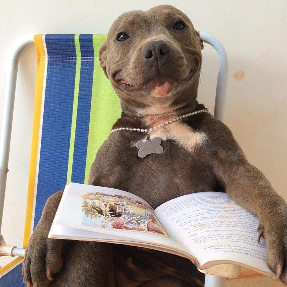 A Pit Bull who reads too much.